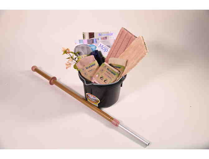rubber brush, Enviro cloths, window cloth, grey dusting mitt and a 1/2 size bag of Laundry Detergent - 1/2 size bag.