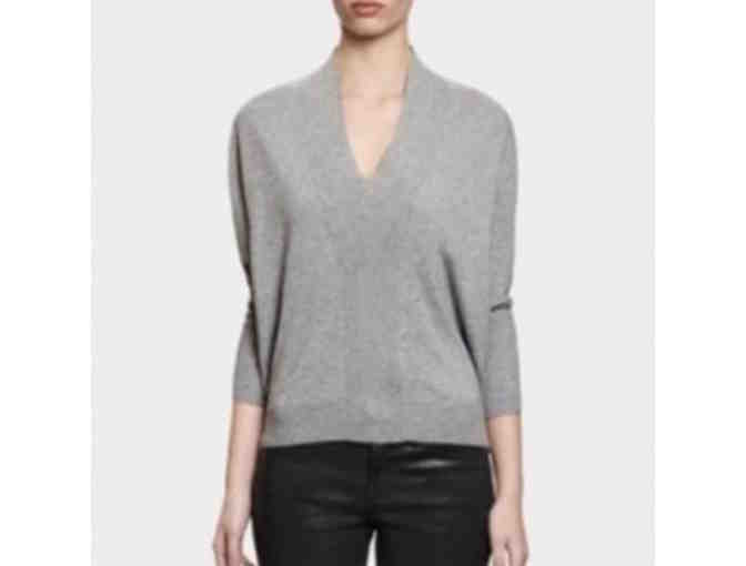 This stylish sweater puts a fun twist on the typical v neck. It's banded collar and slim arms help make you look elegant and slender.