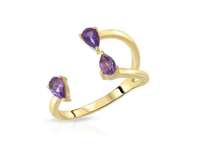 Unique ring with 0.75ctw Genuine Amethysts crafted in 10K Yellow Gold. Size 7.