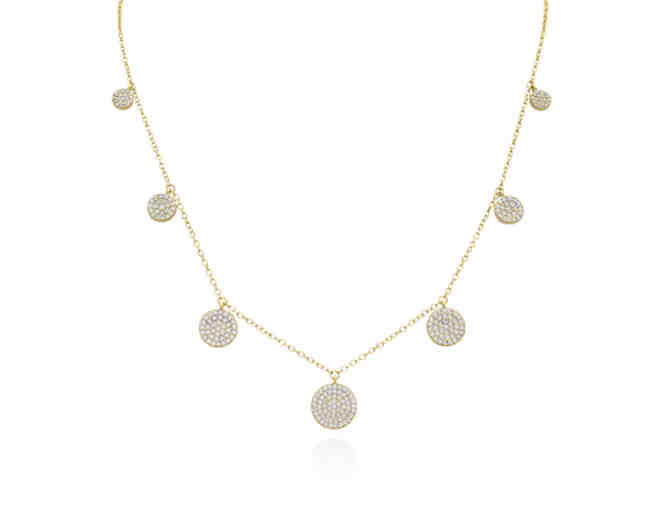 Stunning Jennifer Miller Designer Sparkle Disk Necklace in 14K yellow gold plate. Faux diamonds in adjustable length from 14" to 18".