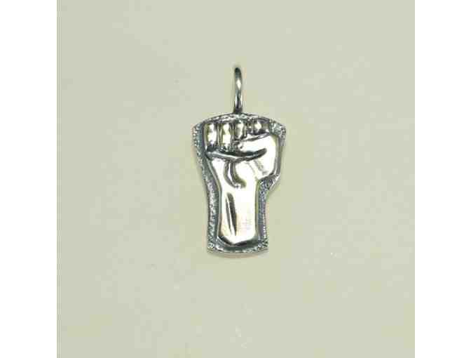 Bid on "People Have the Power" charm by Barbara Klar, sterling silver on a leather cord and it measures 1 1/4" x 3/4". Plus it comes with Free People keychain.