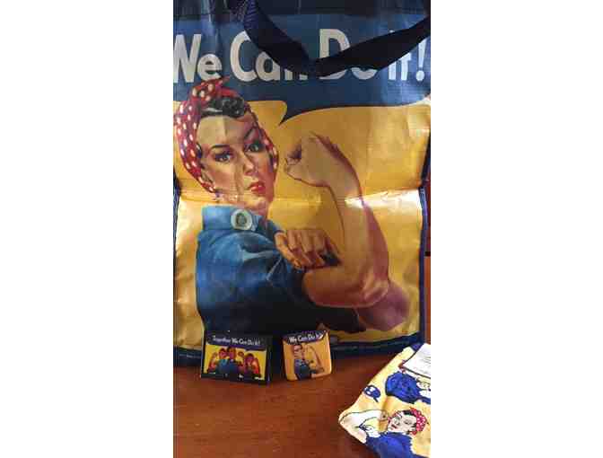 Rosie tote bag 12" x 14", Rosie socks, We can do it! Magnet 3"x2",