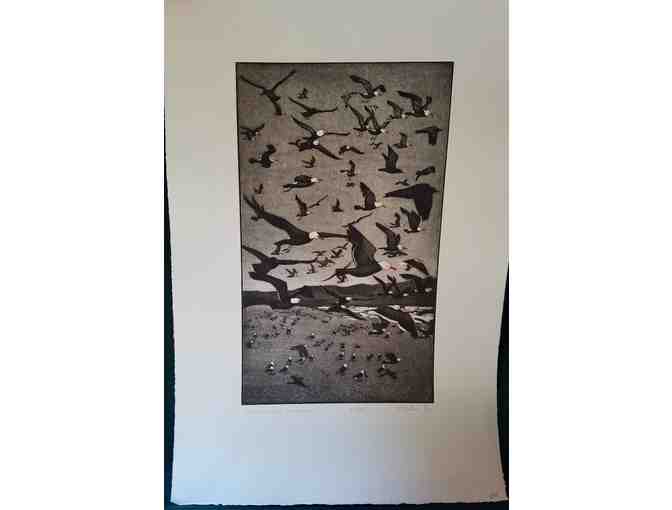 This item is a gorgeous, limited edition Aquatint Etching on archival paper, created by artist and ardent naturalist Keith Nelson. This unframed signed print entitled Herrmann's Invasion was done in 2006 and is number 16 of 20.