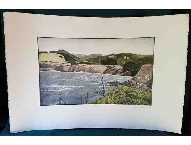 This item is a gorgeous, limited edition Aquatint Etching on archival paper, created by artist and ardent naturalist Keith Nelson in 2007. "Fort Ross Cove" is a stunning image. Image size is 15" by 9". Matted size: 24" by 16".