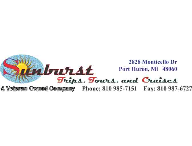 Sunburst Tours Gift Certificates in Port Huron, MI for 2019.