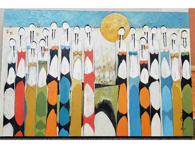 Enjoy this bright painting by artist Karen Chin, sized 35.5" x 23.5"