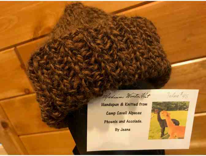 Medium hand-spun & knitted winter hat from Camp Cavell's Alpacas Accolade & Phoenix