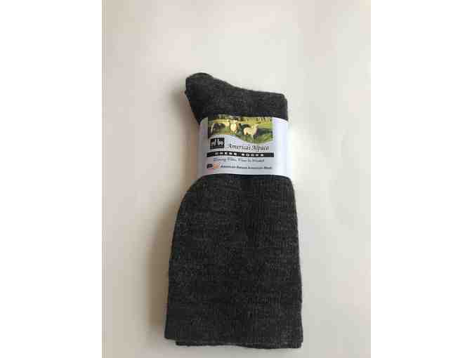 America's Alpaca Dress Socks, Shoe size 10-13, 38% Alpaca, 2% Spandex, 13% Acrylic, 47% Stretch Nylon, Made in the USA.