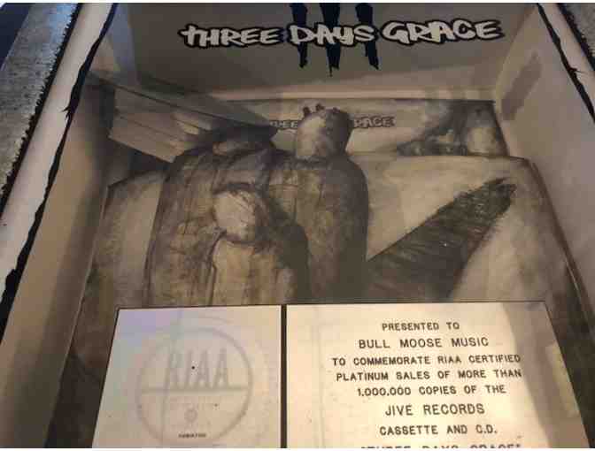 Three Days Grace Platinum (1,000,000 sales) award. Given to Bullmoose Music. #-d unique box. Very cool!