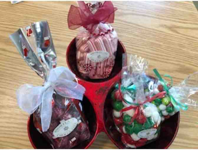 This stylish holiday candy dish will look good on anyone's table. And filled with an assortment of holiday candy from Snowflake Chocolates of Jericho, Vermont.