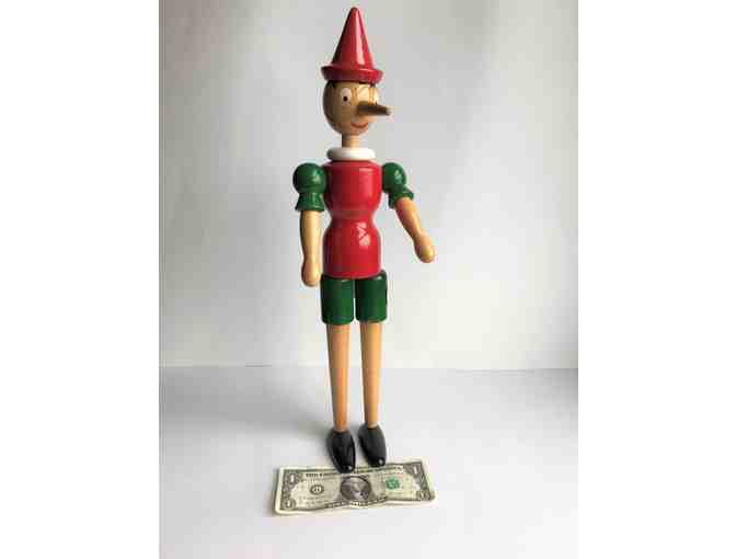 Vintage Wooden Movable Parts Pinocchio Doll For Story Telling, One nose, Large 19", Made in Italy, Used.