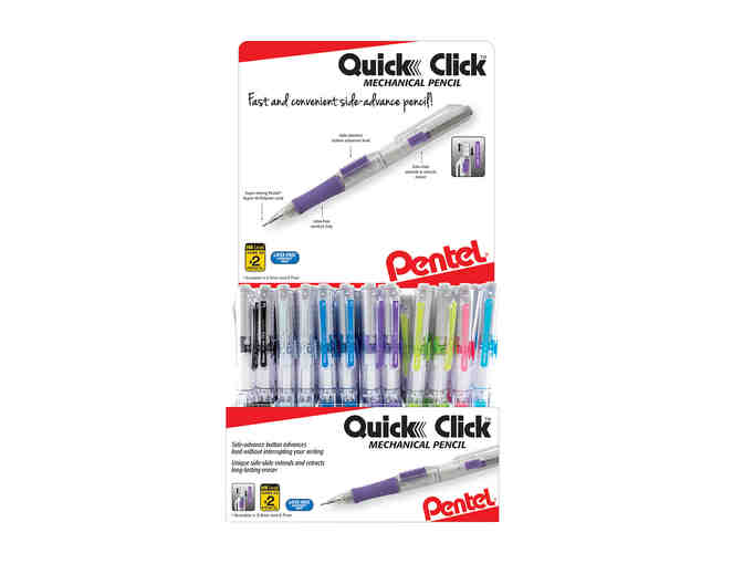 The Pentel Quick Click Mechanical pencil comes equipped with a quick click side-advance button to advance lead without interrupting writing. A slide extends and retracts extra-long latex-free eraser designed to avoid smudging and ghosting. The comfortable latex-free grip provides support for hours of writing.