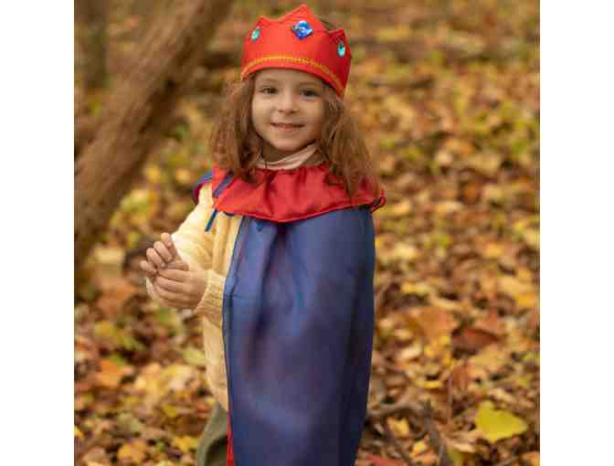 This Sarah's Silks Royal Prince set is easy for children to put on and take off by themselves. The crown and cape match beautifully together and allow for active imagination play. Includes 1 royal and red reversible silk cape. 1 royal and red reversible silk crown.