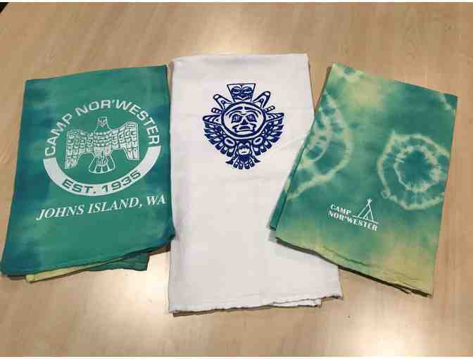 What's more fun than tie-dyed tea towels? Tie-dyed tea towels with the Nor'wester logo! This package includes 3 tea towels, 1 with a large CNW logo, 1 with a North Coast design, and 1 with a small CNW logo. Add some Nor'wester flair to your kitchen!