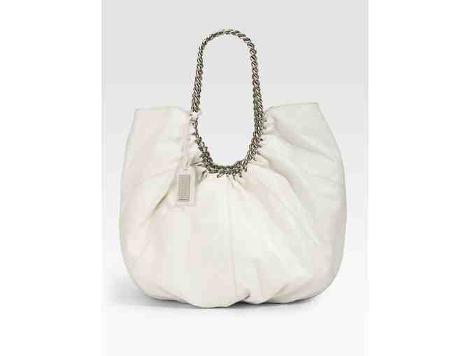 Gorgeous brand new, with tags, Badgley Mischka white Annette chain hobo handbag. Approximately 19" wide and 15" tall.