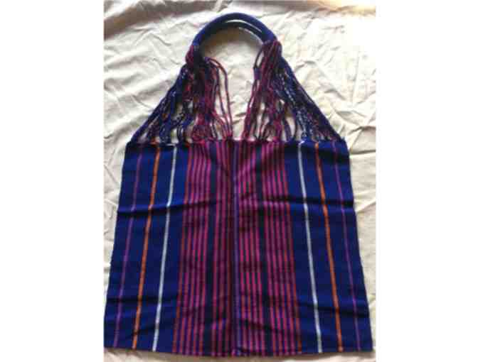 Dyed and woven by artists in Chiapas, Mexico. Purse is 16” x 13.5” with incorporated, comfortable handles. It fits the shoulder easily, while still short enough to carry by hand.