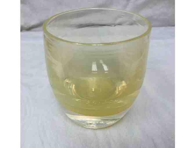 Light lemon yellow see through glassybaby - beautiful for spring and summer table settings. (Comes with box but no tag on the bottom.)