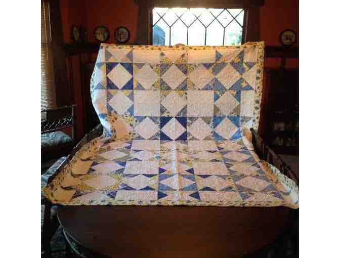 Handmade Quilt (7 1/2 ft. x 6 Ft.) in shades of blue and yellow. This quilt would be beautiful on top of your bed!