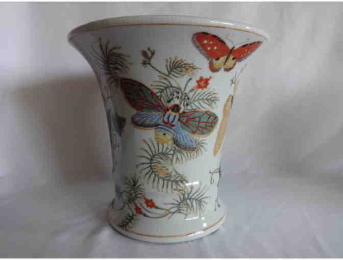 8 1/2 in diameter at the top, 5 3/4 inches at the base, 8 inches high