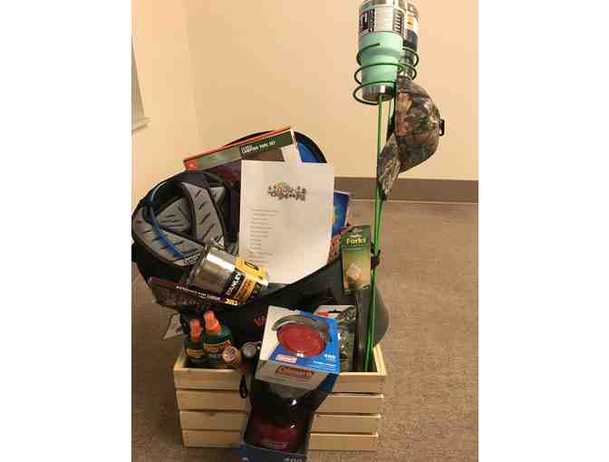 Complete with everything you need to spend a few days in the great outdoors including a cooler, yeti cups, flashlights, a hat, everything you need to make your perfect s'more, a lantern, camper cooler, knife tool set, and much more.