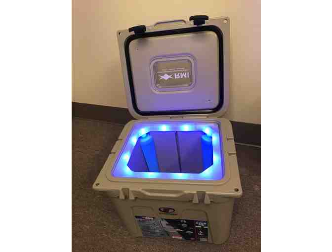 Find your drinks in the dark with this heavy-duty cooler complete with a bright, removable/rechargeable LED liner. Also includes built in hard ice packs.