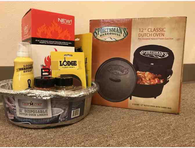Cook your favorite outdoor meal with this complete pack including a 12'' Dutch oven, liner, seasoning, and more.