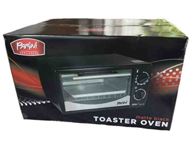The mighty toaster oven! Perfect for the small apartment, studio, or college student. This multi-functioning toaster oven features a 60 minute timer, slide out grill rack, bake tray is included and it is easy to clean. This toaster oven can hold up to 4 slices of bread or an 8-inch pizza.