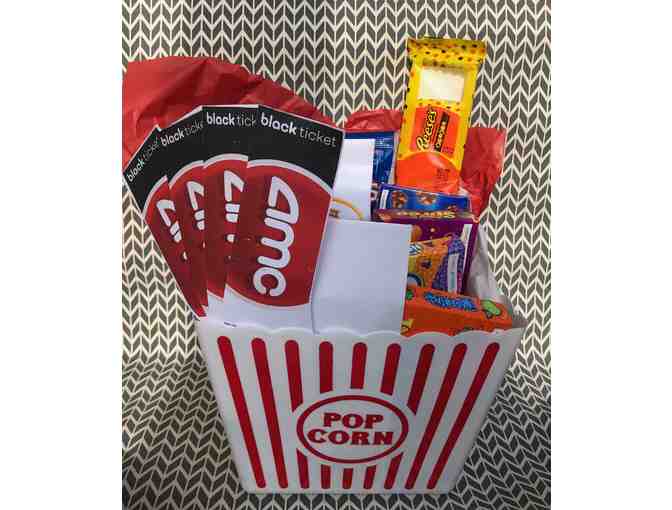 Included in this item: assorted candy, microwave popcorn and 4 AMC black tickets