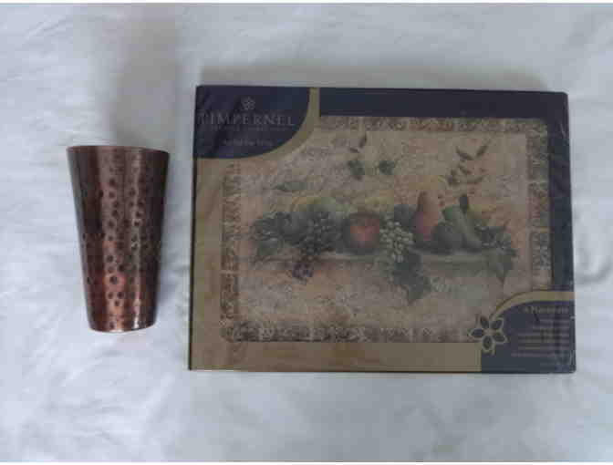 Set and protect your table with 4 classic placemats from Pimpernel. Made in England, these mats are stain and scuff resistant with a unique protective coating. They are heat resistant to 110 degrees C or 230 degrees F. They feature a hardboard protective cork base, covered by a Tuscan art print. Easy to clean by wiping with a damp cloth. Approximately 12 X 16 inches.