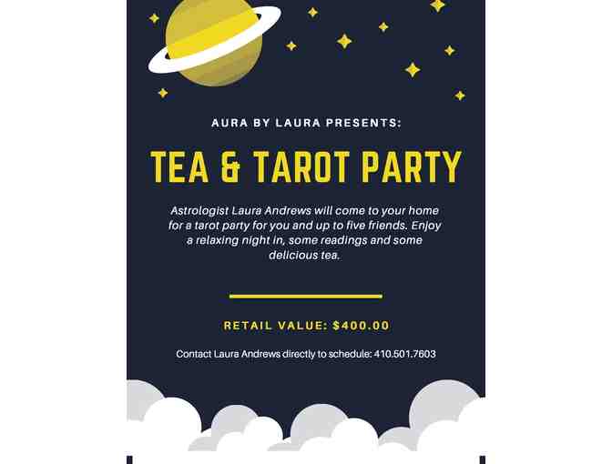 Astrologist Laura Andrews will come to your home for a tarot party for you and up to five friends. Enjoy a relaxing night in, some readings and some delicious tea.