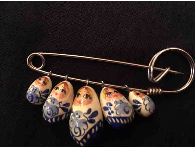 Blue Russian Dolls Pin. Dimensions: 2 3/4" x 1 1/2"
