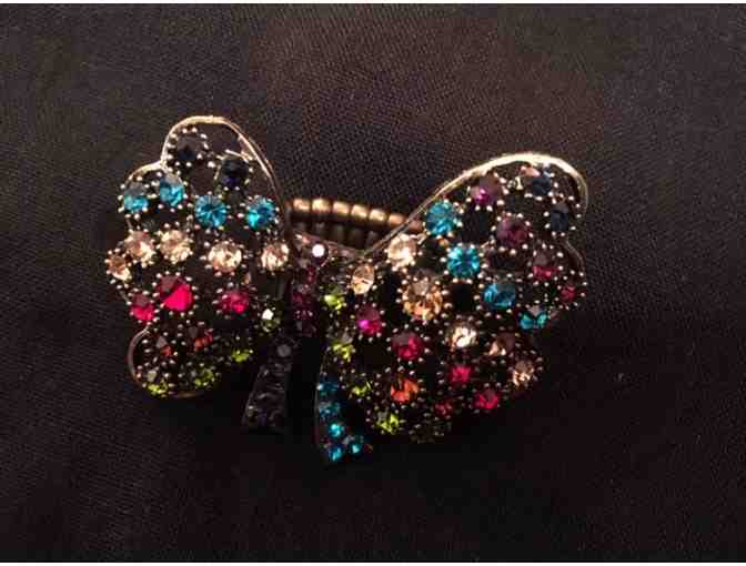 Multi-color Bow Rhinestone Stretch Ring. Dimensions: 2" x 1 1/2"