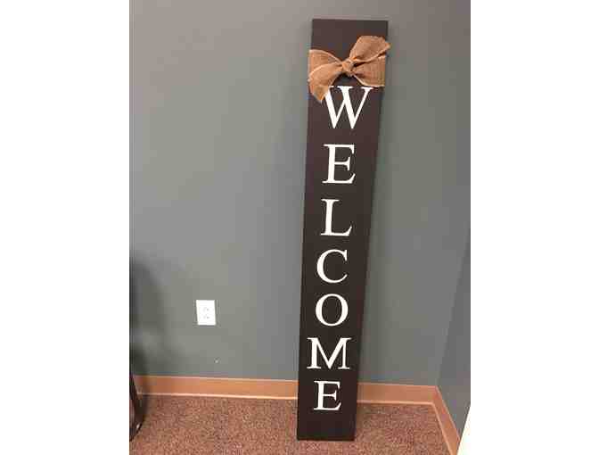 This sturdy 5 ft. sign is black on all sides with "Welcome" in white.