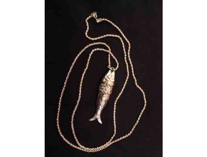 Sterling Jointed Fish Necklace. Dimensions: Pendant 2" / chain 24"