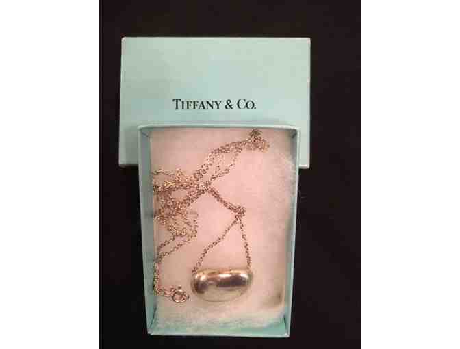 Tiffany / Elsa Peretti Sterling Silver "bean" with Original box. Dimensions: Pendant 1 1/2" x 1/2" / Chain 29"