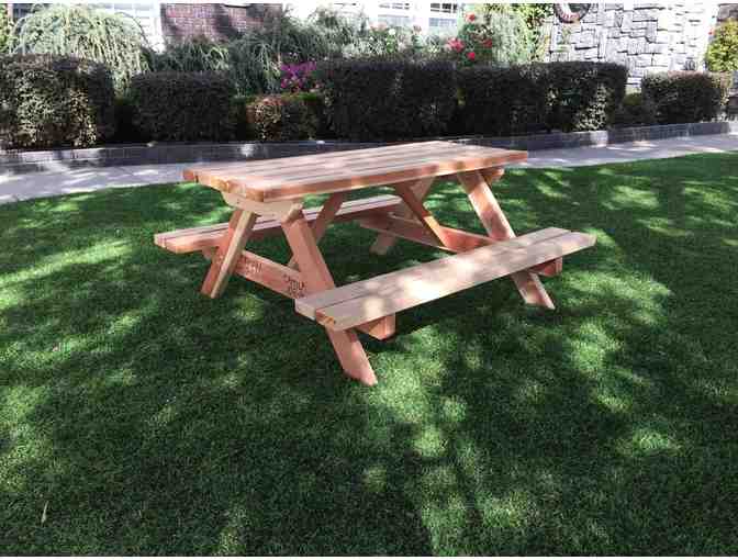 Handmade children’s picnic table made with Redwood and Douglas Fir. Best finish is varathane or Thompson’s Water Sealer. This custom made picnic table is the perfect addition to any backyard. Perfect for a family picnic, barbecue, art and science projects!