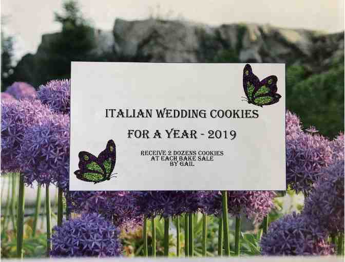 Two dozen Italian Wedding Cookies per month for one year. Cookies made by talented baker Gail Stuart.