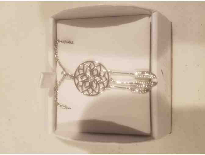 Inspired by a traditional Native symbol of protection, the Dream Catcher pendant is set with .04tw round diamond at its center. Sterling silver.