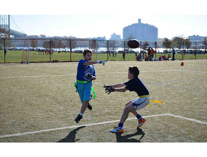Good for 1 child in Fall 2019 flag football league. Only valid in Fall 2019. New participants only.