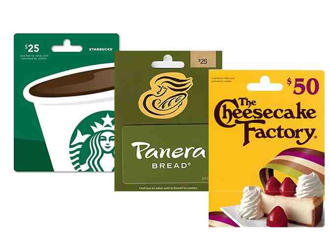 Sick of prepping your own meals everyday? Take the day off with this great offer! This package includes a $25 Starbucks Gift Card, $25 Panera Gift Card, and $50 Cheesecake Factory Gift Card. Great restaurant selections that anyone would enjoy!