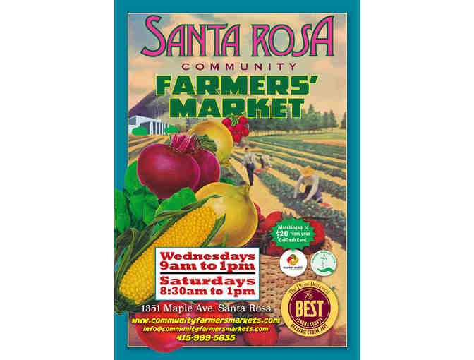 Use this like real cash at the Santa Rosa Community Farmer’s Market at the Veteran's Building. Worth $100.