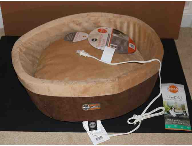 Up for auction is this K and H Thermo Heated Kitty Bed, measuring 23 inches x 15 inches x 6-1/2 inches. The cover can be removed for washing and is energy efficient.