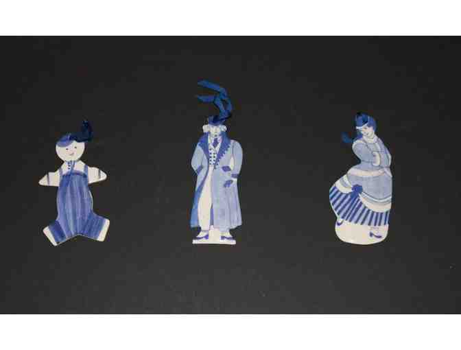 Up for auction are these 3 ceramic Victorian Christmas ornaments - man, woman and gingerbread man, measuring approximately 5-1/2 inches high.