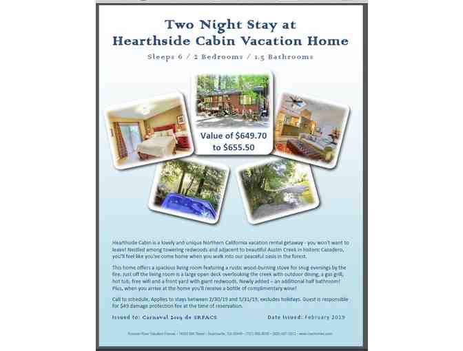 Enjoy a wonderful relaxing long weekend in West Sonoma County with this package from Class 4A. It includes lodging for 3 nights in Cazadero and a gift basket of games and activities to do while there.