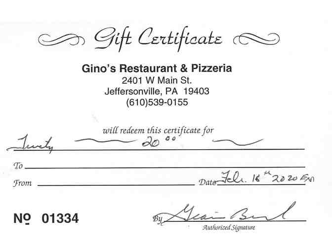 Gino's Restaurant and Pizzeria - $20 Gift Certificate