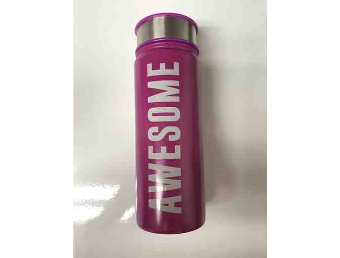 You'll feel AWESOME using this hot pink, 18 oz, Stainless Steel, Vacuum Insulated. wide mouth, screw top water bottle. The finish on this water bottle also allows for the addition of removeable, reusable stickers. Ask your kids, it's a thing!