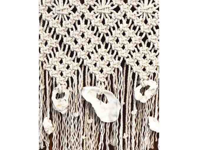 Macramé is back! The creator of this piece, former camper and counselor Maggie Voinot-Baron, originally learned how to tie knots at Camp Nor'wester in 1996. Maggie continues to have a passion for knot-tying and decided to make it a business up in Alaska in 2018- AK Macramé Studio. This macramé wall hanging is made out of 100% cotton rope, driftwood from Alaska, and oyster shells from Orcas Island. It is a beautiful hanging inspired by the PNW. Dimensions: Approx. 32"w x 28"h