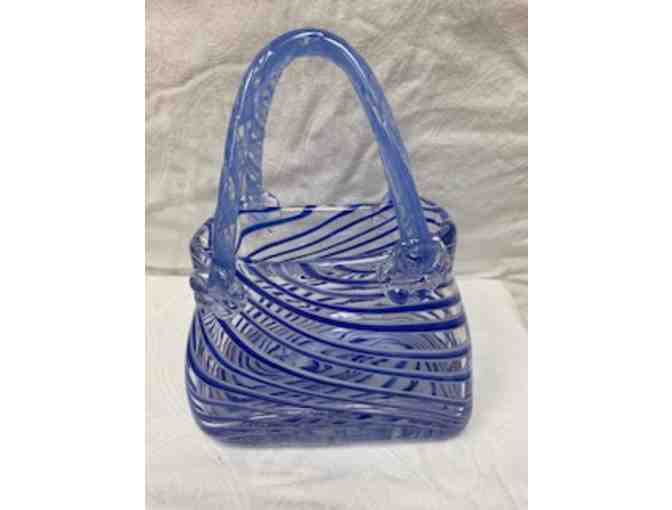 Royal Blue Striped Glass Basket for Flowers or Decor