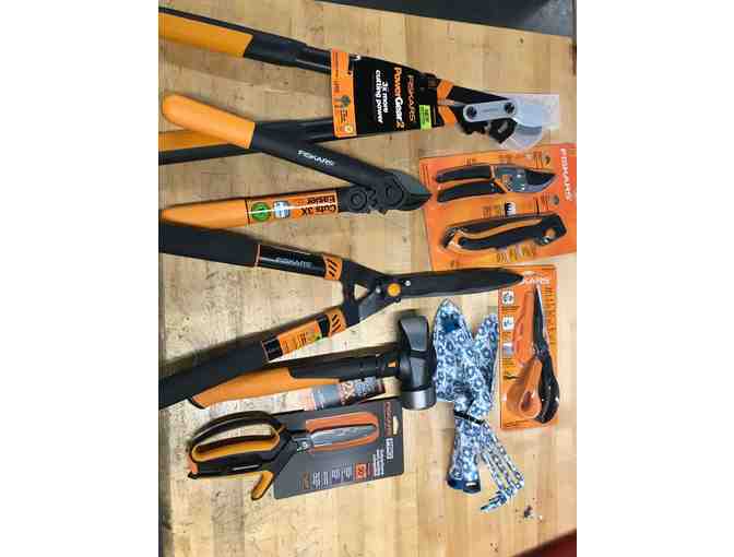 A variety of punches, scissors, rulers, paper trimmer set and garden tool set. See photos for details.