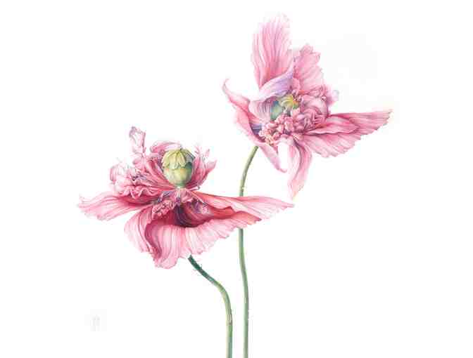 Description: Limited edition museum quality pigment ink print from original watercolors painting of Pink Poppies.